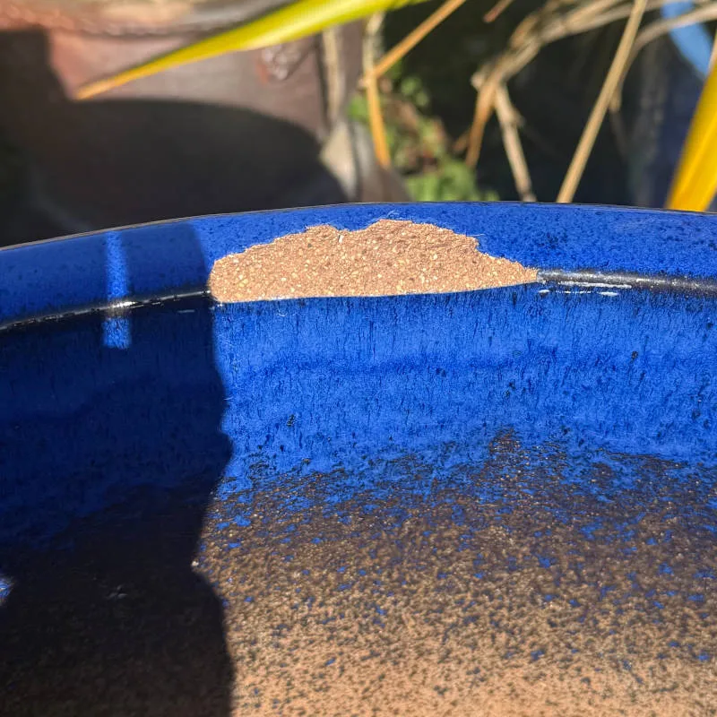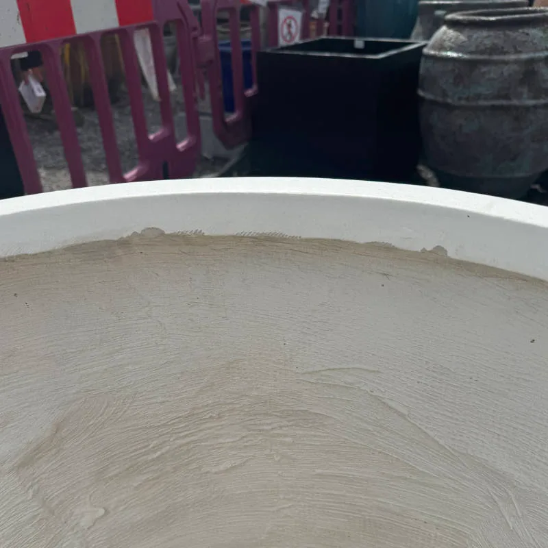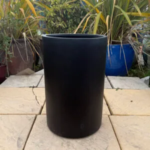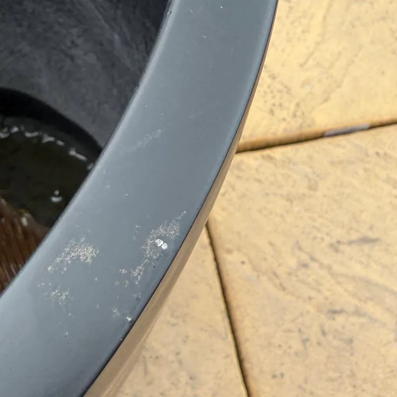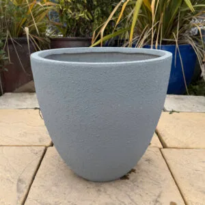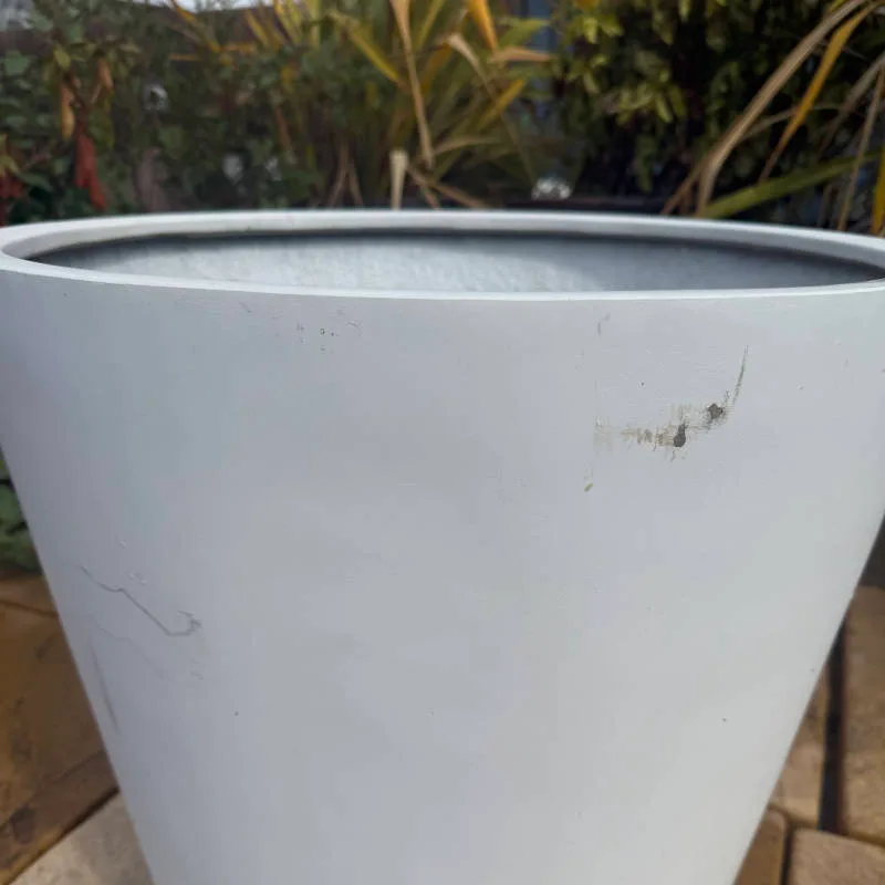 A small-sized fibre cemement pot in a modern grey. As shown in pictures this item has small chips in its paint so the price is reduced.