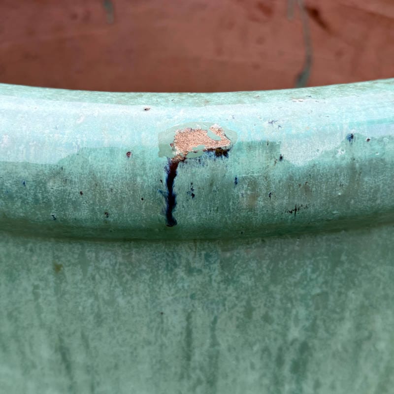 This glazed green tall 352 large has some small damage on the rim which is shown in the pictures. The normal price of this product is £145