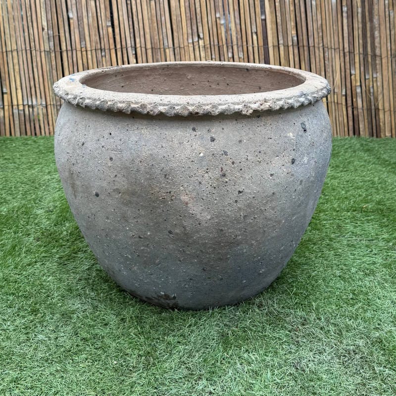 A timeless set of deep planters featuring a subtle pie-crust rim design. Their sturdy weight and low centre of gravity make them an excellent choice for tall trees, adding both stability and classic style to any garden.