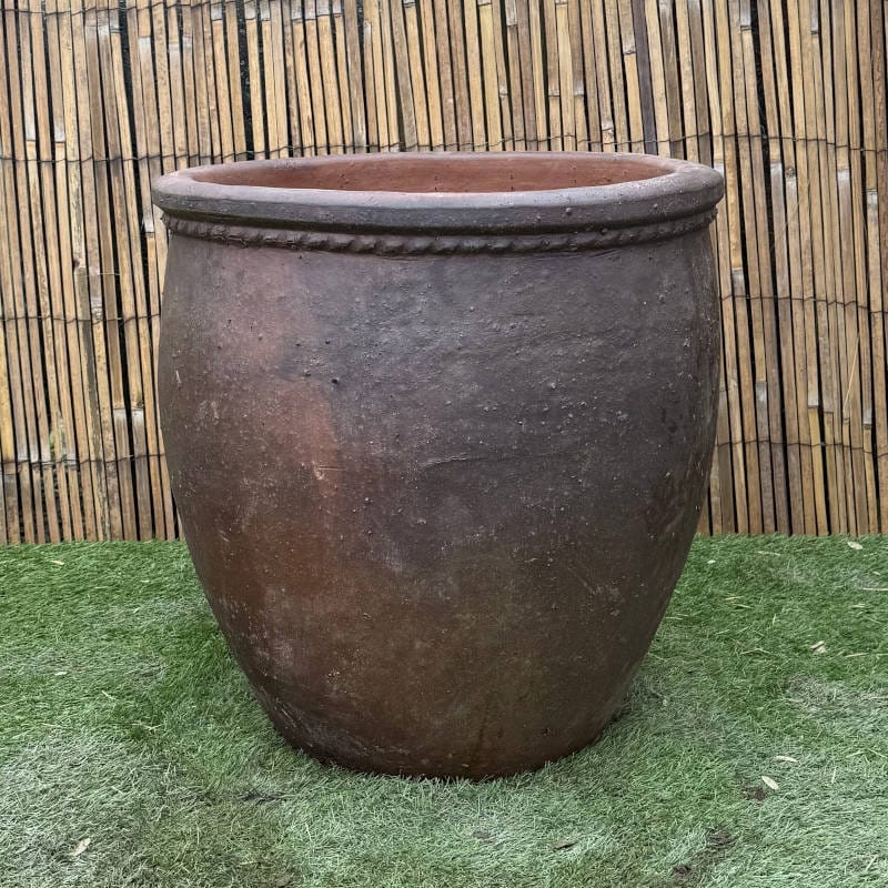 These tall rustic planters feature a simple pie-crust style decoration around the rim, giving them a subtle yet classic finish. Their deep profile makes them perfect for trees, shrubs, and larger plants, while the understated design blends effortlessly into both traditional and contemporary garden settings.